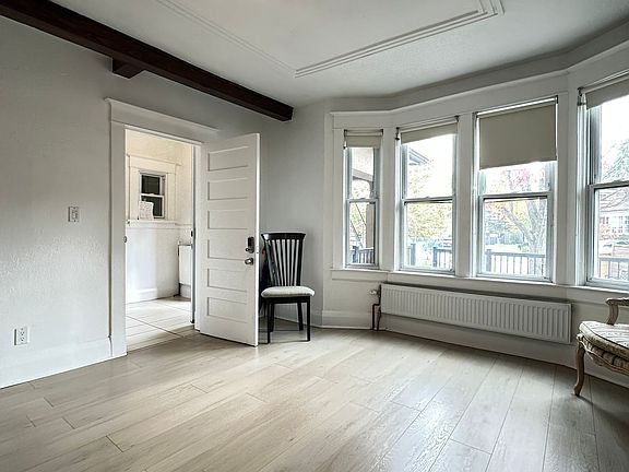 This rental is for an unfurnished one bedroom apartment on the main floor of a triplex house. Unit is fully soundproofed top and bottom. The apartment has a private entrance, and a walk out to a back deck off the kitchen, a large living room, decorative fireplace, spacious dining room and one bedroom. There are 5 new appliances, including gas stove, fridge, dishwasher, washer and dryer. Has separate thermostat for individual temperature control in the unit and individual control in each room. Dedicated hydro meter so the electricity bill would be for how much you decide to use. The hydro account will be opened in the tenants name. There is a $100 monthly flat rate utility charge in addition to rent, which covers the hot water, radiator heating, water consumption, laundry with washer dryer in apartment, garbage and recycling. Parking if required will be street parking by permit. The cost of a yearly street permit in Toronto varies depending on the specific permit type, with residential on-street parking for residents without on-site parking costing about $269.88 per year for the first vehicle ($22.19 x 12) The apartment is located on a quiet dead end street beside Fergy Brown Park and Topham Pond, Walking distance to Eglinton Flats Tennis Club and the Scarlet Woods Public Golf Course. Mintues to York Recreational Centre with free access to gym, yoga classes, running track, swimming pool. Steps to the TTC on Jane Street and Eglinton Crosstown Link Mount Dennis Station and the Weston UP Express Station. The rental agreement includes a non smoking agreement. Furniture in pictures will not be included.
