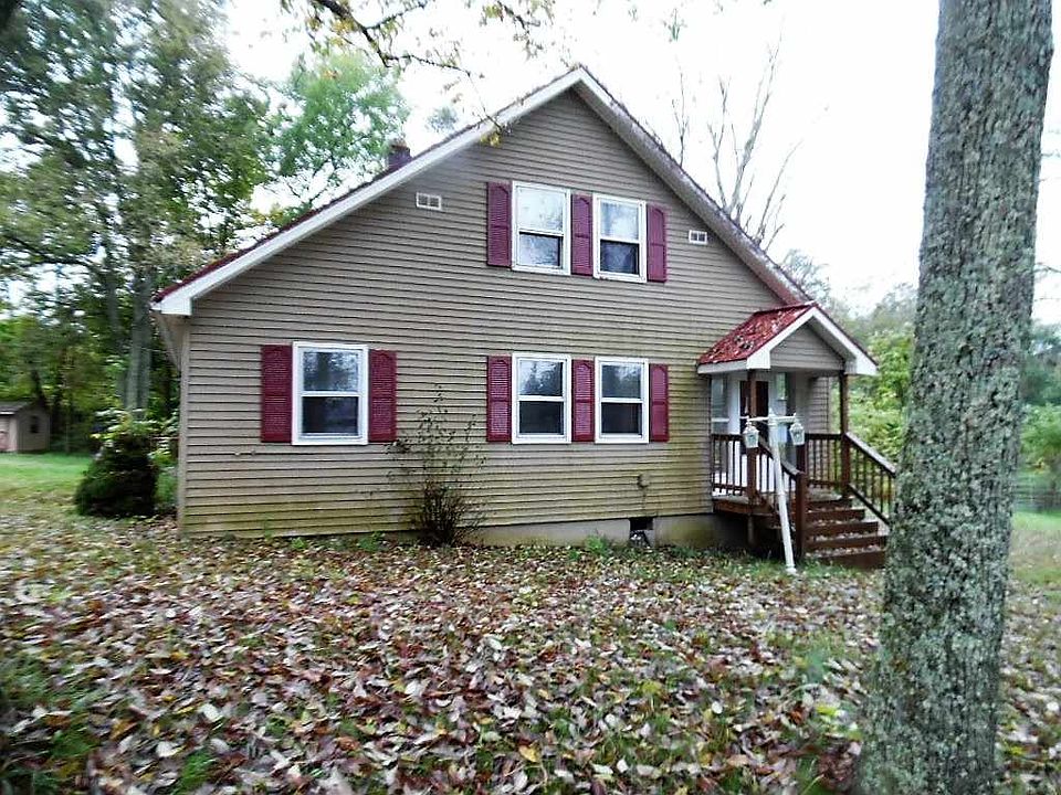 Home in quiet country setting. Large first floor family room with flue. Large rear deck. Storage bld.. Property may have invalid septic system.