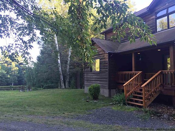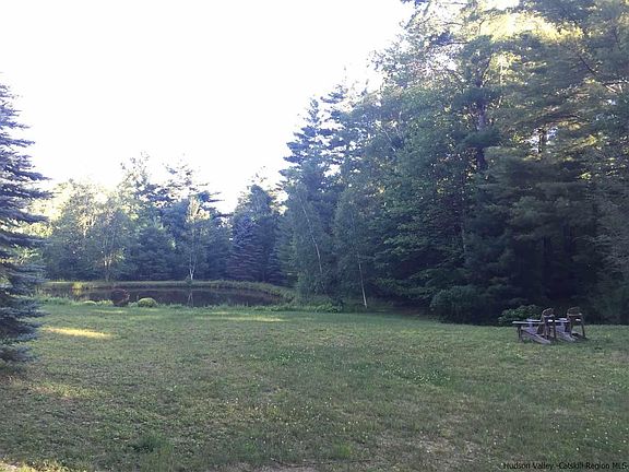 Stunning Woodstock ( Shady ) contempo, privately sited on almost 7 acres, overlooking the private pond, in the bucolic hamlet of Shady, on a private road off the well-maintained Hutchin Hill Rd. 3 bedrooms PLUS a private Master suite with a deck overlooking the pond. Plenty of lawn area for outdoor activities, and just 10 minutes from Woodstock Village, 8 mins to the Bear Cafe, and great hiking right in your "back yard", as well as creek swimming just across Hutchin Hill. A full, finished basement offers great space for indoor activities, including a ping-pong table.