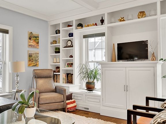 Colonial Revival c. 2016 construction nestled in eastern Belmont near Fresh Pond. This quintessential home features an open-concept main level with 9’ ceilings, a quartz/stainless kitchen, dining room, and coffered-ceiling living room. Generous foyer adjacent to the garage with built-in storage and a lavatory. Four bedrooms, or three-plus-office, on the second floor, including a large primary suite with double closets and a standing-tub bathroom. The top floor features a family room, dormer nooks, and a full bathroom. Full unfinished basement with high ceilings and double utility sink. Fenced backyard with bluestone patio via kitchen French doors. Two-car garage parking with a driveway space in front of each bay. Convenient to Cambridge and Boston. Around the corner from Grove Street Park (playing fields) and Fresh Pond Reservation. Vibrant nearby neighborhoods: Belmont Center, Cushing Square, Mount Auburn. MBTA 75 Bus to Harvard Square. Convenient to Arsenal, the Pike, and Downtown.