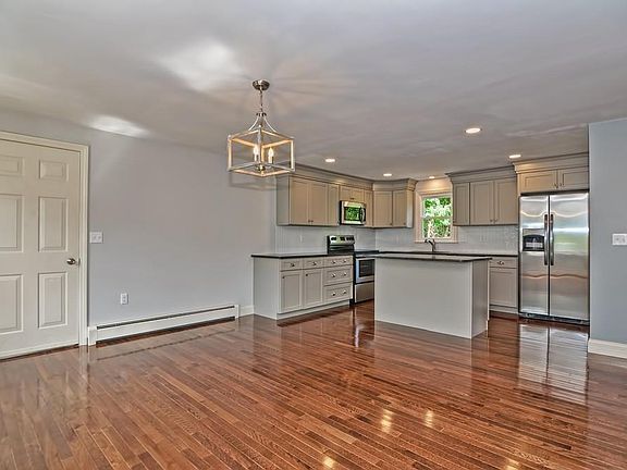 Take a look at this move in ready home! With fresh paint inside and out, new kitchen, flooring, bathrooms, landscaping and more! A well designed kitchen is the first thing you'll see when walking in the door. Brand new grey cabinets are stylish and functional. There are plenty of draws and cabinets for storage plus a large center island for extra seating and workspace. An open dinning room is the perfect place for a large table. In the center of the living room is a brick fireplace. A slider opens onto the back deck. Upstairs is a spacious master bedroom with two closets. All three bedrooms have new carpets. The full bath has stylish finishes including a tiled floor. Downstairs the finished basement would be the perfect space for a playroom or movie room. Finish with a two car garage and nicely landscaped yard this is the perfect place to call home!