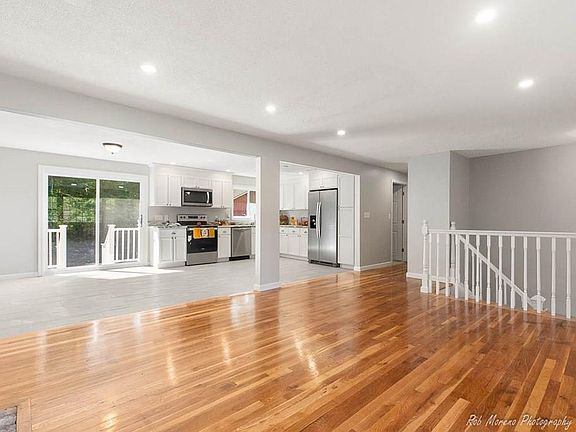 Warm your hands & your heart in this charming, updated 3 bedroom, 2 bathroom split level! Walking upstairs, you are greeted by beautiful hardwood flooring and your first brick fireplace. Open floor plan offers great space for entertainers. Eat-in kitchen has modern white cabinets that give you the space you need, stainless steel appliances and a slider to give you access to the backyard. Three bedrooms and one bathroom complete the upper level. Heading to the lower level is a large 23x15 family room with your second fireplace, den with more storage space, and another full bathroom! This is perfect for a man cave or teen suite. Large backyard compliments the two acres of land providing you with endless opportunities. Parking will not be an issue with two garage spaces, and six off street parking. Perfect for commuters as you?ll be minutes from route 495. Come and take a peek. You'll be glad you did!