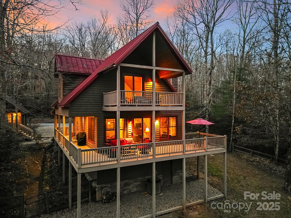 Inside, the vaulted ceilings and wood-burning fireplace create a sense of true mountain living: inviting, peaceful, and filled with character. But what makes this home truly special is the way the indoors and outdoors blend together. Expansive wraparound decking, a covered balcony, and multiple outdoor gathering spaces, which invite you to spend your mornings with coffee in the trees and your evenings under the stars.