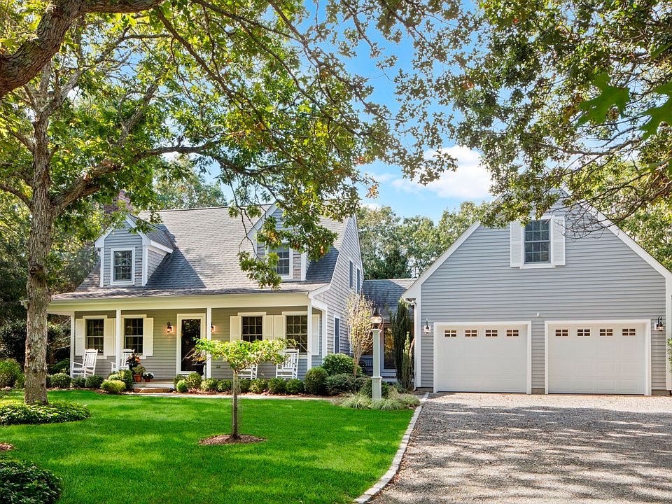 Welcome to 46 Bold Meadow, a beautifully crafted, move-in-ready 4-bedroom, 3.5-bathroom home nestled in Edgartown's desirable Bold Meadow neighborhood. This thoughtfully designed home showcases quality construction throughout, featuring well-appointed living spaces that balance comfort with functionality. The house features a beautiful front porch that opens into the hall, leading to a study and the living room. The living room has a brick fireplace, built-in bookcases, and hardwood floors throughout the house. The hall leads to a half bath with a washer and dryer, and the Kitchen, which was renovated in 2014. The Kitchen has beautiful counters, top-notch appliances, a wine fridge, a built-in gas range, and custom cabinets. The first floor features a primary with an ensuite bath, a sunporch offering a second dining room, and a cozy living space. The back of the house features a mud room and a two-car garage. Upstairs has two guest bedrooms with a shared bathroom and a second primary with an ensuite full bath. The house has an unfinished basement perfect for storage. The property includes access to the association tennis courts through the Bold Meadow association. The property abuts the Manuel F. Correllus State Forest, offering access to over 5,300 acres of protected forests and wildlife. This natural sanctuary provides endless opportunities for walking, biking along scenic trails, and enjoying the unique disc golf course. The expansive outdoor space, enhanced by the forest setting, creates an unparalleled sense of privacy and connection to nature. Whether you're seeking a year-round residence or a seasonal retreat, this property offers Martha's Vineyard living with the perfect balance between peaceful residential living and island convenience. Make this your next Vineyard home!