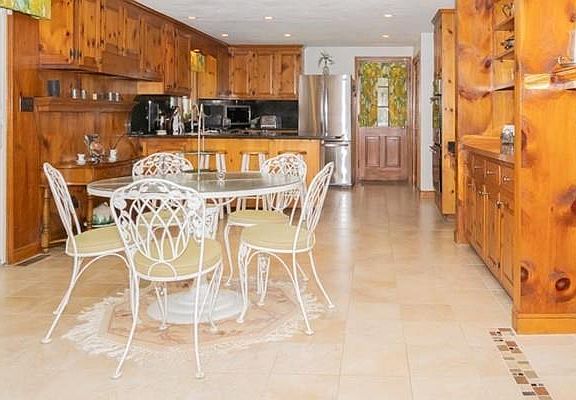 - Kit Dscrp: Pantry, Dining Area, Countertops - Stone/Granite/Solid, Flooring - Stone/Ceramic Tile, Breakfast Bar / Nook, Closet/Cabinets - Custom Built, Kitchen Island, Stainless Steel Appliances, Fireplace, Recessed Lighting, Slider, Country Kitchen