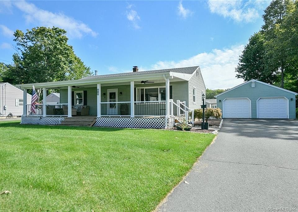 Beautiful Ranch with 3-Beds, 1.5-Baths, 2-Car Heated Garage, Partially-Finished Basement with Half Bath and Wet Bar... Updated Kitchen with Granite Countertops and Stainless-Steel Appliances... Dining Room just off the Kitchen, too... Plus, Spacious Living Room with Hardwood Flooring, Recessed Lighting, and Gas-Insert Fireplace... Custom-Built, Oversized Front Porch with Ceiling Fans... Level Lot and Fully Fenced-In Backyard with Patio, Shed, and Hot Tub... Plenty of Space for Outdoor Enjoyment and Entertainment... New Central Air and New Lawn Irrigation System (runs on well water... Newer Windows and Electrical Panel (200amp... Workshop in Basement with Laundry and Wood-Burning Stove... Located in a lovely neighborhood and only minutes from major highways, Bradley Airport, and many more local amenities