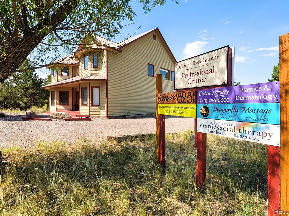 The Crestone Professional center, one of the few properties in the Baca Grande subdivision that has been granted conditional use as a commercial building, is now on the market! Currently leased by 7 businesses and two additional tenants renting space for storage, this is an exceptional income-generating property. Once a large 2700+ sq ft home, it has been converted to accommodate various sized office needs by removal of interior closets to maximize each room's capacity. Conveniently located near the entrance to the neighborhood on a nicely treed 1.05 acre lot with plenty of parking spots for the tenants and their clients, and plenty of land to accommodate more parking if necessary. The home has been well maintained throughout the years, and in addition to hosting office tenants could easily be re-converted back into separate living quarters on either the upstairs or both stories, as the full bathrooms and large kitchens on each floor remain intact. The views from the large second floor spaces of the mountains are breathtaking, and are a reminder of the beauty of the surrounding area. Situated on the paved road and less than 5 minutes to the town of Crestone for groceries, gas, restaurants, hardware supplies, and at the foot of the Sangre De Cristo mountains to enjoy world class mountaineering. This exceptionally rare and money-making property awaits its new owner!