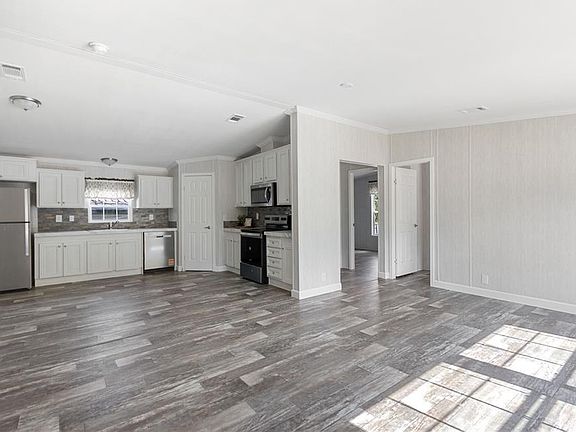 BRAND NEW! This 3 Bedroom 2 Bath Mobile Home offers a 7 Year HOME WARRANTY, split floor plan with many upgrades, stainless steel appliances, laminate flooring throughout, Window treatments, fans in bedrooms with open concept. The stunning kitchen offers ample cabinet space with walk-in pantry. Spacious Primary bedroom includes a relaxing ensuite bath with dual sinks, separate shower and gaden soaking tub. Located just minutes from town. NO HOA!