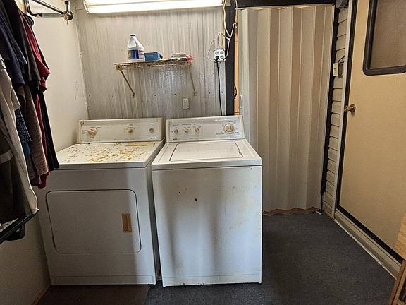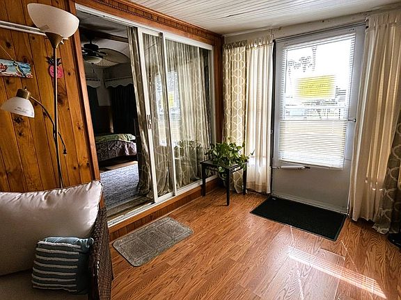 Step into this beautifully refreshed 1989 park model, enhanced by a spacious living room addition flooded with abundant natural light and featuring stylish luxury vinyl flooring. The primary bedroom boasts custom California closets for optimal organization. Enjoy the fully remodeled bathroom with contemporary finishes. The entire interior was freshly painted in 2024, creating a bright and inviting atmosphere. Stay comfortable year-round with two ceiling fans, 2024 central air conditioning, and a hot water heater replaced in August 2024. The kitchen shines with freshly painted cabinets and a new refrigerator (only 1 year old). Convenience meets functionality in the dedicated laundry room equipped with a full-size washer and dryer. For lasting peace of mind, the roof was silicone-coated in October 2025. Priced to sell - schedule your showing today!