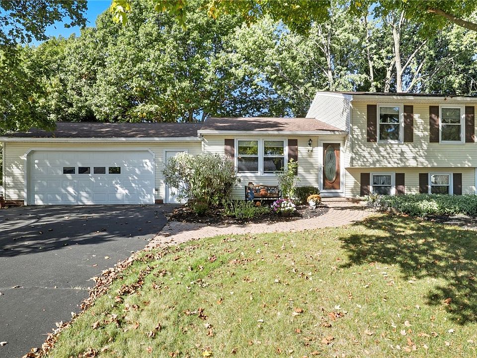 Welcome to this beautifully maintained 3-bedroom, 1-bath split-level in a sought-after West Henrietta neighborhood. Carefully updated and impeccably maintained by the original owners throughout its 55-year ownership, this home is move-in ready. The updated kitchen features hardwood floors, solid oak cabinetry, and granite counters. A bright bathroom with skylight and Jetted Tub, along with a spacious lower-level family room, add to the appeal. Vinyl siding, an architectural roof, upgraded windows, and a 2018 high-efficiency furnace provide comfort and low-maintenance living for years to come. Outside, enjoy the oversized 2.5+ car garage, extra-wide driveway, storage shed, and a mature treed yard with low-maintenance landscaping. Showings begin Thursday 10/2 at 2:00pm. Delayed Negotiation: The seller will review YOUR offer Monday 10/6 after 3:00pm. OPEN HOUSE Sunday 10/5 from 11:00–2:00.