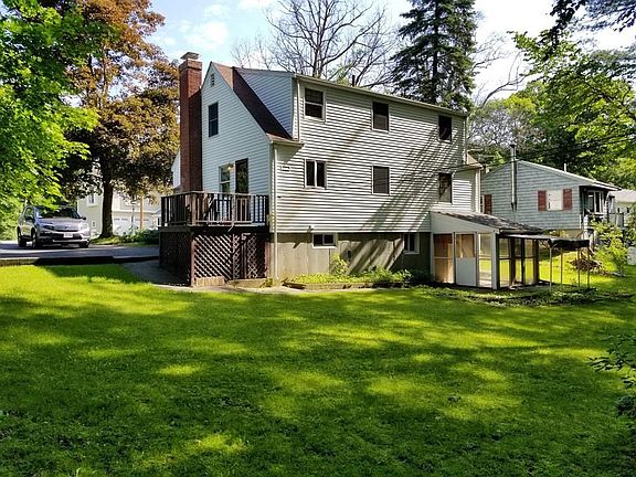 This 3 bedroom 2 full bath Cape is located in an amazing neighborhood with a big flat driveway and an awesome backyard abutting the woods. Cedar Hill Road is a nice flat street and is a short walk to the Ashland Town Forest and is minutes from the commuter train station, downtown, and major routes. There is 1400 sqft of living space, a living room with brand new carpet (hardwood under the carpet)and fireplace, a spacious dining room, 1st floor bedroom, good size 2nd floor master bedroom and updated bath, hardwood floors, vinyl siding. Walk-out basement could be finished!
