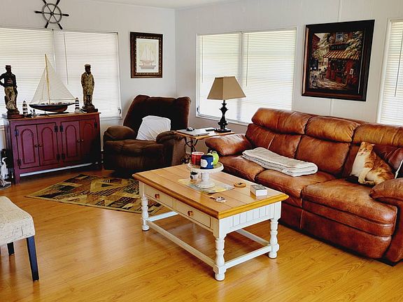 If you enjoy being close to water and comfortable living, this charming home is for you! Just under 900 sq. feet of living space, this completely furnished 2 bed/2 bath home provides tranquility in paradise. Close to the Orange and Caloosahatchee Rivers that surround the community, this home was not flooded during any of the hurricanes because it is slightly more elevated than most of the older homes. It features an open concept living/dining/kitchen area and is nicely furnished and offers great storage. The master has its own private bath with a walk-in shower. The attached 200 sq.ft. screen room features extended living space and is perfect for entertaining. The washer and dryer are in the shed. The home is in the 55+ community of Orange Harbor and allows for up to two pets; some dog breeds are not allowed, so be sure to review the rules. ESA animals are allowed. The monthly lot rent is $900 and includes water/sewer, trash, lawn care, fiber optics internet, and all the amenities of the community including heated pool, large clubhouse, boat slips and boat storage, beautiful sunsets and more. Price is for home only; share for lot making it real property is available to purchase; monthly fee reduces to $407 with purchase of share. Ask listing agent for details.