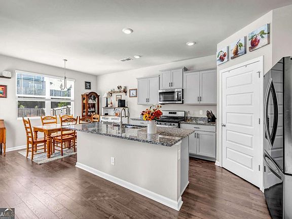 Welcome to Poplar Preserve in Newnan, where comfort meets convenience! This stylish two-story home offers an open layout perfect for entertaining, featuring a spacious family room, modern kitchen with bar seating, quartz countertops, stainless steel appliances, and a walk-in pantry. Enjoy a casual dining area and covered patio overlooking the landscaped, fenced backyard. Upstairs, the private primary suite includes a spa-style bath with dual vanities, a large shower, and a walk-in closet. Two secondary bedrooms, a versatile loft, and an upstairs laundry add flexibility and function. Smart Home technology keeps you connected with lighting, temperature, and security at your fingertips. Just one mile from I-85 and Piedmont Newnan Medical Center, Poplar Preserve offers a zero-entry pool, cabana, and playground. Close to parks, shopping, and dining. Every day feels like a staycation!