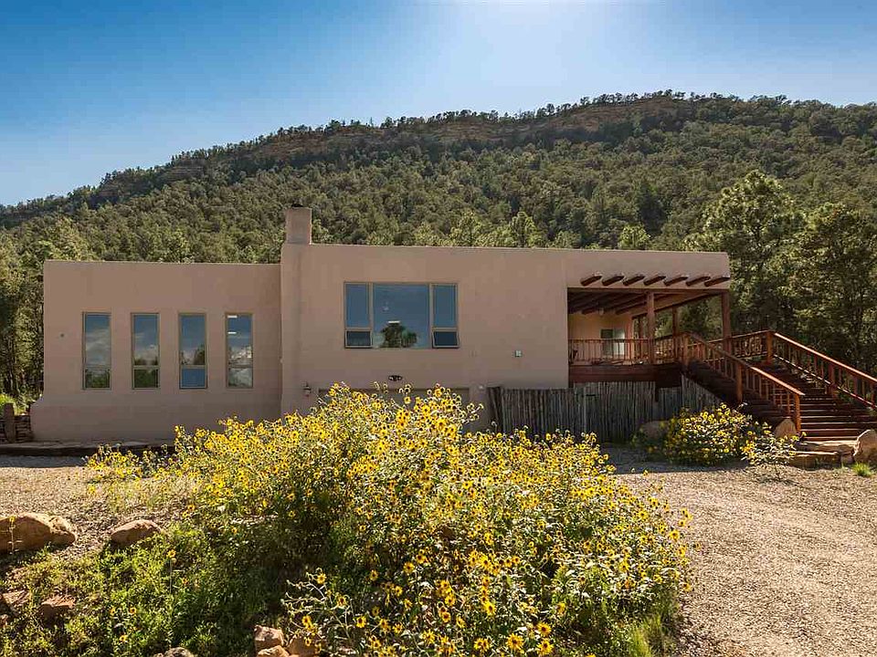 Mountain home nestled in the pines with unparalleled views. Enjoy the amazing scent of the forest, clouds floating leisurely by, exquisite sunrises, moonlit mountains, amazing rain storms and views of the Pecos National Monument. The deep portal is a great space for entertaining. The interior of the home features large windows to take in the views and a corner kiva fireplace to sit in front of and watch the snow fall. Generously proportioned rooms with great ambient lighting and a large attached lower level off the great room which makes for additional living space or super nice studio space. Minutes away from Santa Fe, fishing, camping and hiking. Gated community with sensible C and R's.