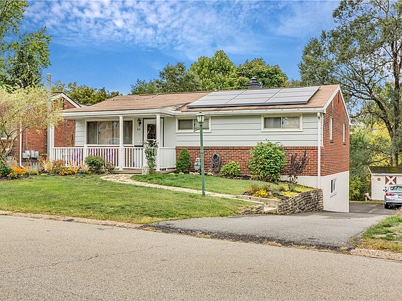Brick ranch with fantastic family room addition! Gorgeous hardwood floors in living room and dining room. Kitchen is outfitted with new stainless steel appliances. Relax or entertain in the huge family room with brick fireplace. 3 bedrooms and 1 bath on the main floor. Game room, master bedroom and full bath on the lower level. Beautiful back yard and the hillside is planted with wild flowers and other plants to provide a low maintenance area. Save money on energy bills with the environmentally friendly solar panels! Great location, close to I79, I 376, St Clair Hospital and an easy commute to downtown Pittsburgh and the airport. American Home Shield Warranty to buyer at closing.