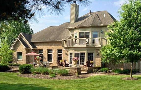 This brick home situated on 2 lots, is on Oak Tree Golf Course with a fabulous brick , two tier patio. Come inside to tray ceilings, recessed lights, hardwood floors and a huge eat-in kitchen with a fireplace open to the family room also. First floor laundry. Two masters suites, one on main floor one up with a balcony overlooking the golf course, both with Jacuzzi tubs and double sinks. The basement has a large game room and a full bath. Beautiful 18 x 44 in-ground heated pool with oversized cement decking and a 16 x 20 pool house. Beautiful view of the 11th fairway at Oak Tree Golf Club.