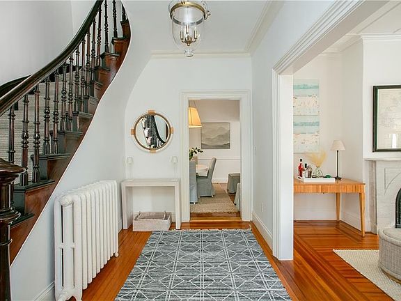 Sold off Market, entered for comp purposes: Nestled on a side street on Historic Hill, 46 Corne Street is the perfect blend of authentic and current— a truly timeless offering. Converted long ago from a 2-family to a single family property, this light & bright home is situated on a rare corner lot, giving it a unique, airy feel. Step up to the elegant front porch which gets exquisite afternoon sunlight. Enter through the foyer and move through well-proportioned rooms — formal dining room, living room and den/office- all which flow seamlessly into one another and that are complemented by high ceilings and oversized windows. This main level also offers a generously sized, first-floor bedroom with en-suite 1/2 bath. Just past the dining room is a full bath in the hall which leads to a charming kitchen, equip with brand new stainless steel appliances and French doors leading out to a lovely patio. Up a gorgeous, winding stairway, you will find 3 more bedrooms and 1 full bath. Additionally on this level, there is a large laundry room and kitchenette. This would be an ideal site for a primary en-suite bath with walk-in closet & laundry area. Steps to boutiques, award-winning restaurants, museums and shops, this property presents many interesting options for personalization- but also is delightful as-is.