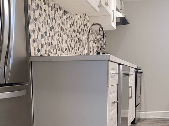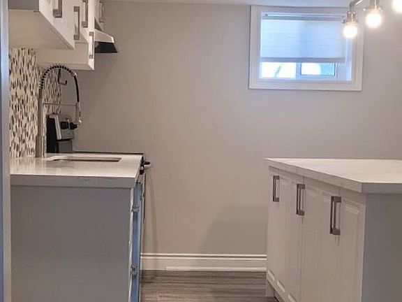 Beautifully renovated basement apartment that perfectly blends modern finishes, bright spaciousness, and exceptional convenience in one of North Yorks most desirable neighbourhoods. Nestled on a quiet, tree-lined street just minutes from Highways 401 and 400, Yorkdale Shopping Centre, and both TTC and GO Transit, this stylish lower-level suite is ideal for professionals, couples, students, or downsizers seeking high-end living with a relaxed suburban feel. Step into a private unit with its own entrance and enjoy a bright, open interior filled with natural light from large above-grade windows. The thoughtful layout and upgraded insulation offer a peaceful, energy-efficient living experience rarely found in basement apartments. Generous ceiling height adds to the sense of openness and gives the space a true main-floor feel. The suite features one spacious bedroom with a built-in closet organizer, a sleek 3-piece bathroom with glass shower, and a large open-concept den thats perfect for a home office, study zone, or additional living space. The kitchen boasts stainless steel appliances, quartz countertops, stylish backsplash, and ample cabinetry flowing into an inviting living area ideal for entertaining or unwinding. Additional features include private in-suite laundry, premium vinyl plank flooring, pot lights throughout, and a fresh, neutral palette that complements any decor. High-speed internet and all major utilities are included in the rent with no hidden fees. Parking available for $100 per month if required. Enjoy nearby greenbelt trails and scenic walking paths, with easy access to Yorkdale Mall, Costco, Humber River Hospital, parks, schools, cafes, and local shops. One direct bus ride to York University. Quiet, clean, and move-in ready, this exceptional suite offers outstanding comfort and value in a prime location.