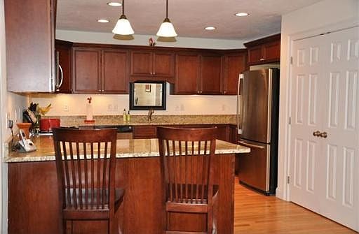 Simplify! Offering something for everyone, the Villages at Stow is nestled in a scenic New England town amidst apple orchards, farm stands and golf courses; yet is minutes from conveniences, highways and commuter rail. Walking distance to the Stow Community Park. Community is a mix of condominiums and single-family units. Beautifully maintained end/corner unit offers an open floor plan with spacious living/great room, marble gas fireplace, half bath, upgraded granite and cherry kitchen and large dining area with access to covered deck. First floor is finished in red oak hardwood floors. Open foyer leads to spacious second floor with master bedroom, master bath with jacuzzi/whirlpool and shower, 2 additional bedrooms, full bath, walk-in closets and convenient 2nd level laundry with washer/dryer included. Custom Hunter Douglas 2 wooden blinds throughout and upgraded granite vanities in each bath. Two car attached garage. Full basement. The Villages, the way home life should be!
