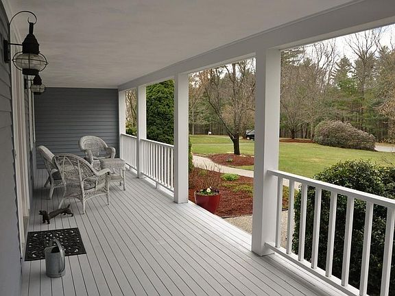 Classic FARMHOUSE COLONIAL in one of Sudbury's Northside sought after neighborhoods. As soon as you step from the farmer's porch into the 2-story foyer, your eyes go to the open floor plan mixed w/ traditional details. This 4/5 bedrm Farmhouse Colonial, (five bedroom septic installed) on .93 flat & professionally landscaped acres, boasts amenities such as chef's kitchen which opens to sun-drenched family room, dramatic granite/wood mantle fireplace, oversized windows, detailed woodworking, classic moldings, hardwood floors & beautiful outdoor bluestone patio for summertime barbeques. Finished LL perfect for au pair or playroom. Oversized shed (12 x 24) for extra storage. Conservation land across the street for views of nature; Cul-de-sac street. Go GREEN -Current Homeowner never receives ELECTRIC BILL; newly installed solar panels provide credits for current electric needs. SAVE ON WATER BILLS-Irrigation system works off private well