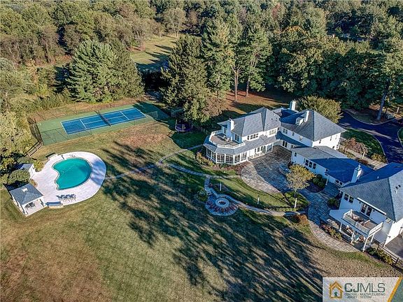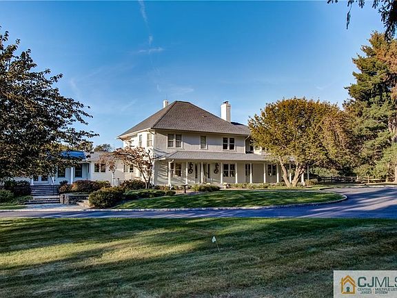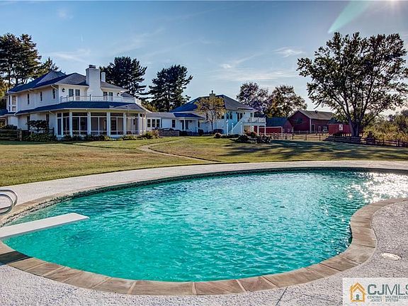 ONE-OF-A-KIND CRANBURY ESTATE COMBINES LUXURY & COUNTRY LIVING! This enchanting 6 bedroom, 5.5 bath property is spread across 13 scenic acres and includes a completely updated main house with a spectacular 1 bedroom/1.5 bath in-law / au pair carriage home addition, new heated saltwater swimming pool with new pergola and cabana, refurbished tennis court, new blue stone patio with outdoor kitchen, fire pit, gorgeous screened-in porch with newer hot tub, fenced-in yard, separate dog run, enclosed pasture, plus three outbuildings, including an historic cider barn, a hay barn, and a beautiful post-and-beam main barn! Current owners completely remodeled from top to bottom using a prestigious architect, an award-winning builder, and ONLY THE HIGHEST QUALITY MATERIALS! The most discerning buyer will appreciate the attention to details and fine finishes, from the French limestone flooring that graces the foyer, kitchen, and mudroom, to the top-of-the-line appliances in the stunning kitchen. Here you will find Miele and Wolf appliances, Rohl faucets, Brazilian marble counters, heated limestone floor, custom cabinetry, an enormous island, and hand-painted imported tiles. Luxury and superior design continue with new hardwood floors, oversized moldings, pocket doors, recessed lighting, and spacious rooms- including a palatial living room ideal for large gatherings! Walls of French doors lead to either the stunning bluestone patio or the idyllic screened-in porch with new hot tub! The second floor master suite rivals a five-star hotel with an exquisite luxury bath with heated floor, free standing tub, custom cabinetry, and a spectacular over-sized shower for two with multiple body jets, rainfall shower head, and designer tile work! The master bedroom also boasts a high ceiling with reclaimed wood detail, a wood-burning fireplace, and a beautiful deck/balcony area overlooking the picturesque backyard. The finished basement provides a 13-seat stadium-style theater room, an entertainment room, and a mini-apartment space with a kitchenette, full bath, and separate egress to the outside. The addition has been carefully designed to integrate seamlessly with the main house and features the same high-end styling and finishes. Ideal for extended family, this space has an elevator, chef~s kitchen with Wolf, Miele, and Sub-Zero appliances, sunlit living room with gas fireplace, spacious bedroom, walk-in closet, luxury bath with heated floors and walk-in shower, PLUS large den or office - all of which is handicap accessible. Trex decking, Pella windows, new roof, multi-zoned HVAC, 4-car garage, outdoor hot water shower by pool, custom window treatments throughout, neutral decorator paint palette, the list goes on! Visit this unique property and prepare to be wowed- there is truly nothing else like it on the market 2020-06-23