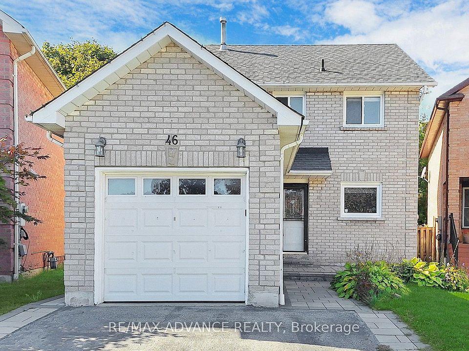 Welcome to 46 Deverill Cres! Perfect for first-time buyers, this charming home features a bright open-concept layout with granite kitchen countertops, stylish backsplash, pot lights, and walkout to a beautiful deck with spacious pie-shaped backyard. Recent upgrades include fresh paint throughout, furnace & A/C (2021), modern light fixtures, interlock and landscaping (2021). The upper-level bathroom has been tastefully updated, and the finished basement with bathroom offers additional living space. Located in a family-friendly neighborhood with easy access to schools, parks, supermarkets, shopping, and Highway 401. Just a short walk to Westney Heights Plaza with Banks, Shoppers Drug Mart, Sobeys, Starbucks, and more. Dont miss this fantastic opportunity!