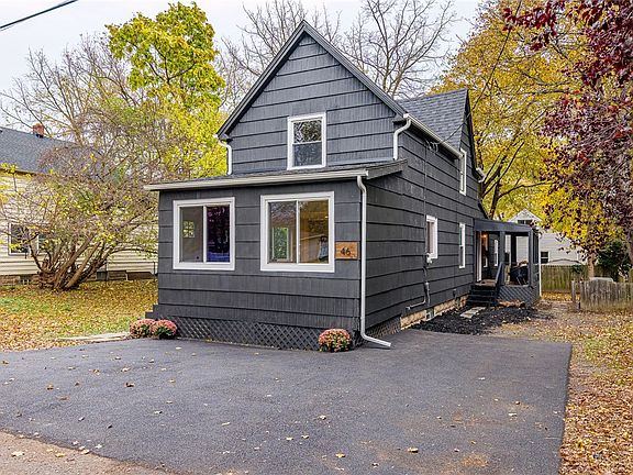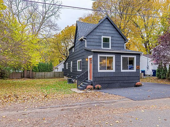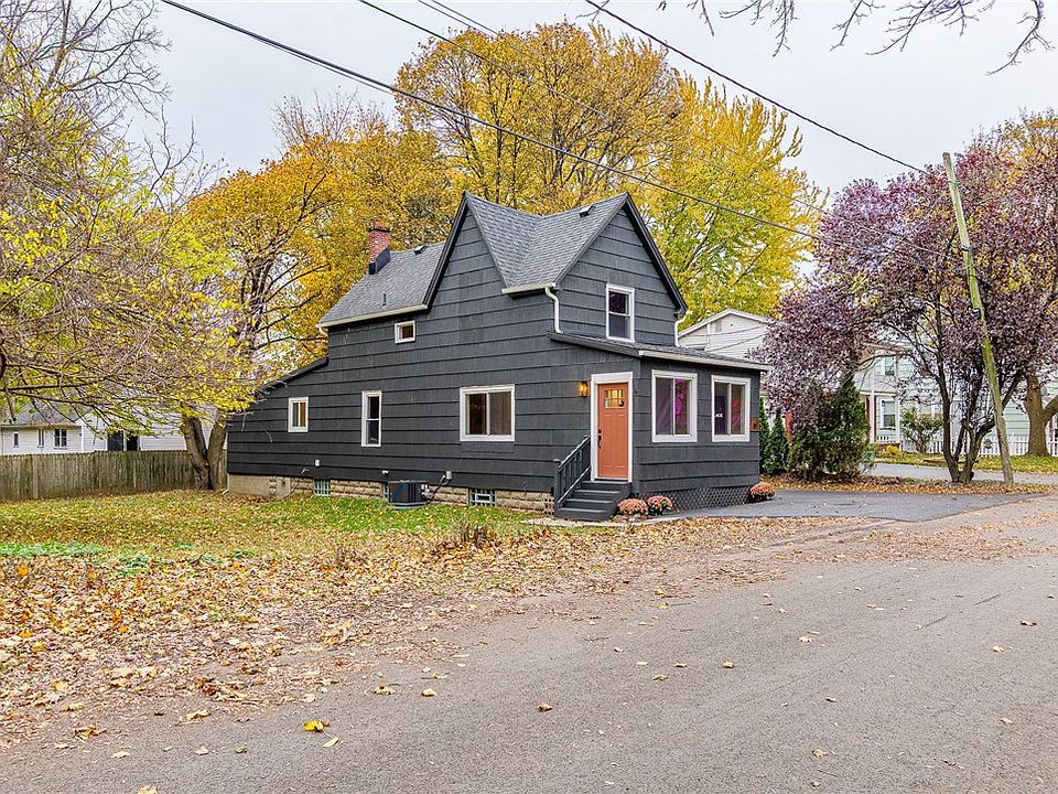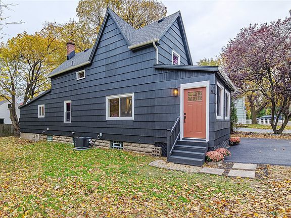 A full transformation from top to bottom-redesigned with intention and style this home in West Irondequoit is brand new inside and out. New roof, gutters, windows , all except 2 in up back bedroom, 6 panel interior doors, new entrance doors, driveway, and paint inside and out set the tone for a stunning interior with a new first floor primary bedroom suite plus an additional half bath around the corner. Brand new kitchen with Quartz Countertops, Soft Close hardware and Raised Panel cabinetry. Custom island, all new SS appliances, stylish baths with custom vanities and a cozy new fireplace in living room. All major systems replaced-furnace, A/C added, hot water tank, most electrical and plumbing. A gorgeous double lot with room for your boat or build your own garage all in West Irondequoit Schools. This home truly is move-in ready. Fresh modern vibes and ready for its next chapter. House lives like a ranch, but has plenty of space upstairs with 2 more bedrooms and a new full bath. Real list shows 1352 SF seller enclosed front porch to make it 1443 SF. Don't forget to check out the side, partially screened porch off driveway side of home. Only C of C's on file with town will be provided. Seller will provide affidavit of no change for survey so please note that in an offer. Please allow 24 hours notice for seller response. Thank you.