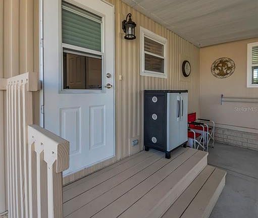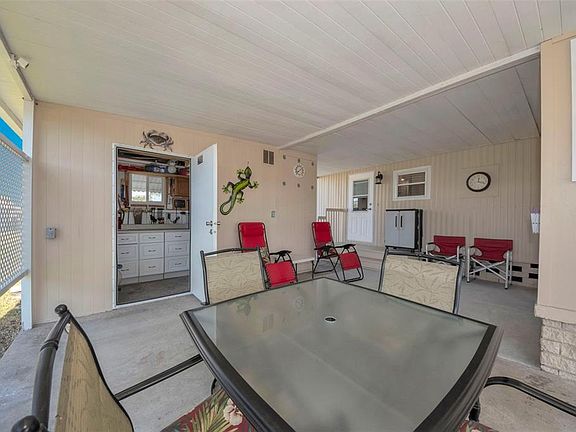 Beautifully updated, fully furnished, and move-in ready, this immaculate home is the perfect choice for anyone seeking a beautifully finished Florida retreat or an ideal vacation getaway. Located in the highly desirable Tarpon Shores 55+ Resident-Owned Community, YOU OWN THE LAND—the $40,000 co-op share is included in the list price and can be financed through the HOA. This home features quality custom-built oak and ash wood furnishings crafted by the owner, newer double-pane thermal windows, wood blinds throughout, easy-care laminate, tile, and vinyl flooring with solid plywood subfloors, and the vapor barrier is approximately 7 years old. The fully equipped kitchen showcases upgraded, high-quality IKEA cabinetry, creating a clean, contemporary style with smart storage and modern appeal. The Extendable dining table easily seats six. The kitchen/dining room opens directly to a cozy and inviting living room. A large 82” doorway leads to the upgraded Florida room. This bright space serves beautifully as a second living area or guest room and includes a modern queen-size sleeper sofa. The Ceilings were rebuilt with new structural joists bringing them up to code and providing added strength, stability, and peace of mind. The interior was meticulously sealed, caulked, and prepped prior to painting, ensuring a clean, high-quality result. The very roomy primary bedroom offers a comfortable queen bed with a high-quality mattress and plenty of closet space. The updated hall bath features a vanity with cabinet, another cabinet for linens, and a step-in shower. Modern Flush Mount ceiling fans with lights in the living room and bedroom. ADDITIONAL UPDATES include HVAC (2016), roof (2009), and a newer water heater. The seller added additional electrical outlets and a convenient exterior laundry closet right outside your door for added convenience and with a 2-year-old washer and dryer. You will love spending time outdoors—whether you’re relaxing on the shaded porch with its beautiful natural breezes or soaking in the warm Florida sunshine on the open patio. Perfect for morning coffee, evening conversations, or weekend gatherings. A two-car carport and storage shed completes the package. TARPON SHORES is known for its friendly atmosphere, organized activities, and resort-style amenities including a large clubhouse, Large heated pool, pickle ball, bocce ball, shuffleboard, billiards, BBQ area, library, and monthly newsletters. The low monthly fee of $315 covers lawn care, lawn spraying, water, sewer, trash, cable TV, community info channel, and internet. With low taxes and a fantastic location, you will enjoy the World-Famous Tarpon Springs Sponge Docks, beaches, parks, dining, shopping, boating, golf, and more, this beautifully updated home offers an easy, low-maintenance Florida lifestyle in a welcoming resident-owned community.