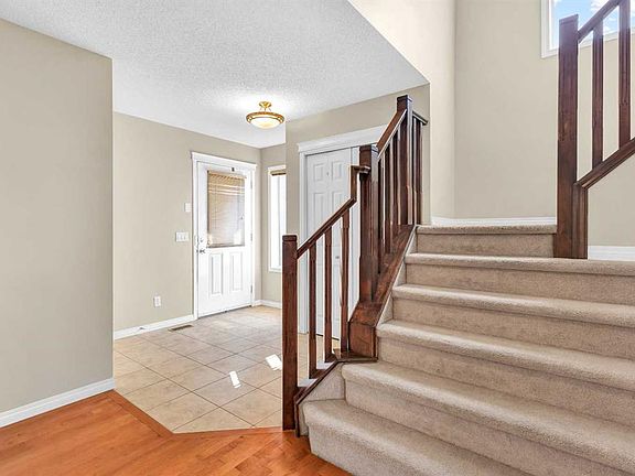 Welcome to this move-in ready 2-storey home in Coventry Hills, offering over 1,780 sq ft of well-planned living space. The main floor features durable hardwood and tile flooring, a cozy gas fireplace in the living room, and a functional kitchen with upgraded countertops, cabinets, and a walk-in pantry. A flexible front room provides options for a dining area, home office, or kids’ playroom. Upstairs, discover a spacious bonus room filled with natural light, along with three bedrooms. The primary suite includes a walk-in closet and private ensuite with a soaker tub and separate shower. The upper-level laundry adds everyday convenience. The unfinished basement presents excellent potential for future development—whether as a recreation room, gym, or additional living area—tailored to your needs. Outside, the west-facing backyard is fully fenced with plenty of space for gatherings, gardening, or RV parking, with rear lane access for flexibility. Located within walking distance to Coventry Hills School, Nose Creek School, and North Trail High School, and just minutes from shopping, parks, and transit, this home combines everyday convenience with future growth potential.