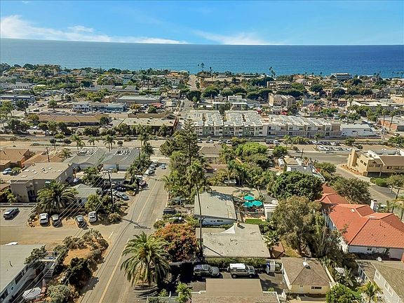 You buyers will absolutely love this Encinitas Highlands mid-century style beach house with ocean views! Literally steps to PCH 101 hot spots, train, and beach, leave your car home. Character ceilings and hard wood floors. Updated bath vanity and tub/shower tile surround. Inviting deck off living room perfect for entertaining and BBQ's. LARGE kitchen with granite counters and stainless appliances. Newer windows. Outdoor shower (rinse off after beach). One car garage with extra parking in driveway. Sewer: Sewer Connected Topography: LL