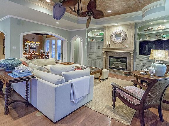 Casually elegant custom leisure with a unique indoor outdoor floor plan.The stunning courtyard pool&spa w/outdoor fireplace enhance the vacation home feel.Soft color palette w/updates throughout.Chef's kitchen with custom island,Viking applcs and exotic Kohlie & reef counters.Master suite w/marble bath + 2nd bedroom(or Media)down.Wood floors thruout. Shutters&custom draperies.Landscape lighting, raised/irrigated garden beds,outdoor kitchen,arbor & fountain in the private backyard.New roof 2016