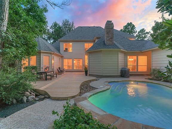 Two story home located in the desired neighborhood of Wedgemere in Cochran's Crossing. Centrally located. 4 bed, 3.1 bath, 3,618 sqft, 2 car detached garage w/ workshop, carport, private shady backyard w/ treated wood deck, pool w/ waterfall, gaslog fireplace, tile/wood/carpet flooring, granite counters, butler's pantry, large master, whole house dehumidifier, Nest programmable thermostats upstairs & downstairs, walls of windows, on-demand hot water heaters, game room, Frigidaire refrigerator included. Zoned to CISD and award-winning David Elementary. Private neighborhood w/ low traffic. Over $83K in upgrades including these 2018 upgrades: roof, carpet, interior paint throughout, exterior siding paint, large outdoor deck, frameless master shower, and pool heater. 2017 upgrades include two pool pumps, backyard fence / gate, and front yard sod. Whole house professionally cleaned. Very good condition w/ great floor plan. Minutes to Market Street, Hughes Landing & The Woodlands Mall!