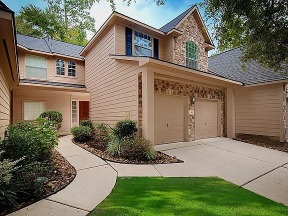 Two story townhome on a cul-de-sac w 3 full beds, 2 1/2 baths, gameroom, plus 2 car attached garage! Island kitchen w tons of counter/prep space, 42" cabinets, brand new ss appliances and serving bar into dining room. The stone which accents exterior of home is featured on fireplace surround & mantle in the large family room. Downstairs is also a half bath & coat closet. Large master bedroom and bath w two secondary beds and full bath are all up plus a spacious gameroom/multi purpose area. Backyard has raised deck, pavers and rock for a maintenance free, entertaining space. Interior walls & trim have been freshly painted. Front yards, exterior of the home, & roof are covered by the HOA. W/D, REF INCLUDED.This popular Ryland neighborhood offers access to beautiful walking trails, parks and quick access to Woodlands amenities while providing a more maintenance free lifestyle!