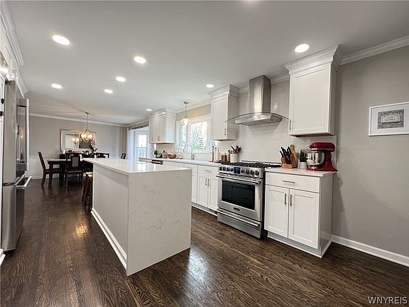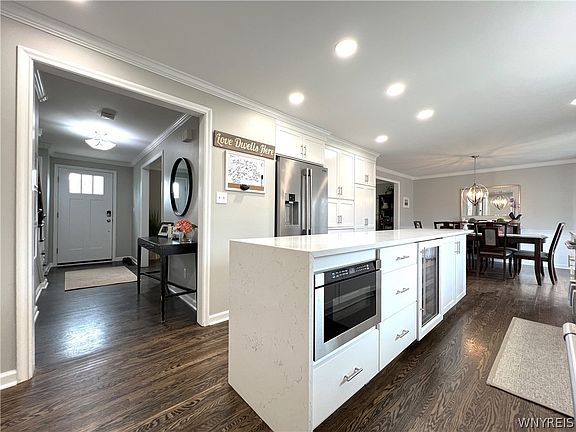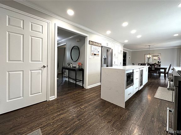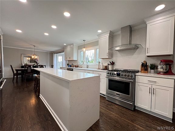 Look no further. This is the home you’ve been waiting for! 4 bdrms, 2.5 bath in highly sought after Village Green neighborhood. Williamsville Schools! Updated & move in ready. Large eat in kitchen w/quartz counters, backsplash & custom cabinets. Top of the line appliances incl sub-zero wine fridge. New HW floors throughout 1st flr. Family rm w/beautiful gas fireplace &built-ins. Updated 1/2 bath perfectly placed next to patio door for easy access from yard. Backyard paradise w/stamped concrete patio w/fully fenced yard, inground heated pool &hot tub (’17), pool house w/fridge, outdoor kitchen w/built in gourmet American grill. Upstairs you’ll discover 4 lg bdrms w/hardwood flrs & large walk in closets. Primary suite w/dual closets, beautifully refinished HW floors &recently renovated ('23) en-suite w/heated floors. Both upstairs baths have custom candlelight vanities, quartz countertops, tiled shower & custom glass shower enclosures. Cedar closet & 2 linen closets &refinished hardwood flrs complete the 2nd flr. Roof '15, HE furnace '23, HW tank '17, sump pump '18 & freshly painted interior '23. (Playset excluded from sale). Showings begin 4/19. Offers reviewed 4/24 @5PM.