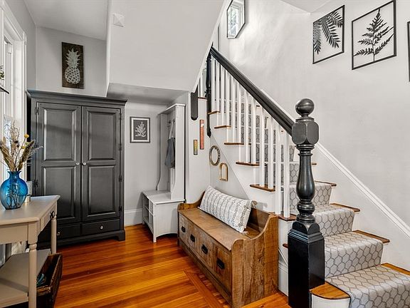 Fabulous Victorian-era residence, set on a side street in the sought-after Oakdale neighborhood, seamlessly blends historic charm with modern amenities. The interior is highlighted by original architectural details, high ceilings, oversized windows, and hardwood floors. The dining room features a built-in china cabinet, and the foyer and staircase landing add to the home’s character. The updated kitchen and bathrooms, along with a spacious closet in the primary bedroom, enhance functionality. A versatile third floor offers potential as a fourth bedroom, office, or playroom. The exterior is equally impressive, with newer siding, private backyard with garden, new shed, and access to the front deck and patio. A stunning front farmer’s porch invites you in. The location provides easy access to major highways (Rte. 95, 128, and 1), Boston, bus routes, commuter rail stations, Oakdale Square, Legacy Place, and Dedham Plaza. This lovely home awaits its next owners.