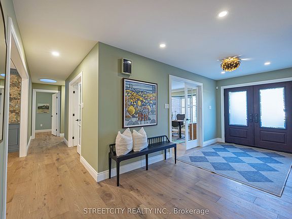 Experience refined living at this executive ranch situated in prestigious Warbler Woods in the west-London community of Byron. Located within a welcoming court among distinguished residences, this spacious 2+2-bedroom home has undergone a thoughtful renovation inside and out. A detailed record of renovations is available, reflecting the uncompromising quality throughout. The property features a double door entry into an elegant foyer, a main floor den, and a centre hall living room, as well as a well-appointed dining room designed for entertaining. The chef's kitchen boasts premium finishes and a spacious eating area with views of the surrounding forested yard and saltwater pool. There are multiple outdoor seating options on both the glass-railed deck and poolside patio. The family room is enhanced by newly installed skylights, an oversized patio door, entertainment space, and fireplace. The main floor includes two spacious primary bedrooms, each with its own private ensuite and extensive custom closet storage, offering significant privacy and convenience. The main floor laundry area is equipped with high-end appliances. The mudroom offers ample storage and a wet sink for various projects or pet care. A newly constructed open staircase leads to approximately 1,500 sq ft of lower-level living space with full walkout access to the landscaped rear oasis. This level features two bedrooms, abundant storage,4-piece bathroom, laundry room, and spacious family room overlooking the peaceful backyard and swimming pool. This wonderful home combines exceptional design and functionality, presenting a unique opportunity for long-term enjoyment.