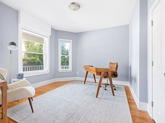 Stunning, fully gut-renovated 3 bedroom, 3 bathroom bi-level luxury condo in the highly sought-after West Roxbury neighborhood. The open-concept main level features a chef's kitchen with a center island, granite countertops, and stainless steel appliances. The living area is a standout, with custom built-in shelving framing a gas fireplace, while the adjacent dining space opens directly to a spacious private deck - perfect for effortless indoor/outdoor entertaining. The generously sized primary suite boasts a beautiful vintage stained glass window, a custom walk-in closet, and a luxurious en-suite bathroom with elegant, high-end finishes. The versatile lower level/third bedroom offers endless possibilities - ideal for a home office, playroom, or guest suite - complete with a full bathroom. Additional highlights include an exclusive rear deck, additional storage area in basement, and TWO deeded parking spaces. Pets negotiable with landlord approval. Sorry, no undergrad students.