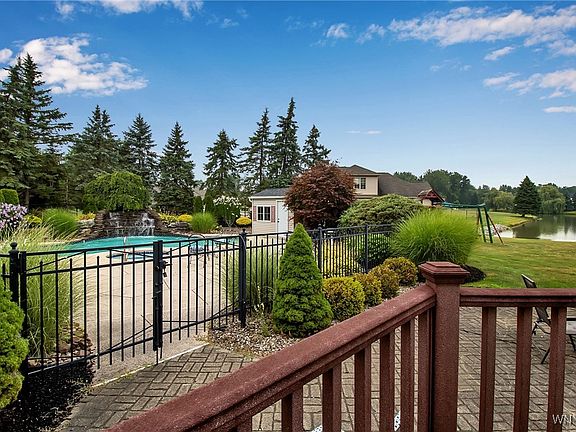 Situated on a corner lot and nearly one acre of private, beautifully landscaped grounds, this exquisite property offers resort-style living at its finest. Enjoy a luxurious in-ground pool with a hot tub and waterfall, a multi-tiered deck with gazebo, concrete patio, playset and picturesque views of a serene pond — perfect for relaxing or entertaining. Inside, the first floor features Brazilian hardwood floors, gorgeous spacious dining room with wainscoting and 9-foot ceilings in both the family room. The newer kitchen is truly a showstopper, ideal for any home chef. A first-floor study with custom built-ins provides the perfect work-from-home space. Upstairs, you’ll find spacious bedrooms, including a primary suite with 9 foot ceilings and dual walk-in closets and a luxurious ensuite bath. The finished basement expands your living space and is equipped with a separate service entrance, full bathroom, dedicated workout room, wet bar, and a pool table — a true entertainment hub! Other amenities include a new shed, partial roof 2025, new generator , sump pump with backup, sprinkler system, 2024 furnace and AC 2021 ; adding even more convenience to this exceptional property. This won't last !