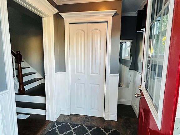 Covered verandahSeparate dining roomLarge eat-in kitchenWhite wood cabinetsLarge deckThree bedroomsLaminate flooring