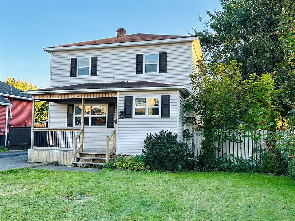 This beautiful 2-storey home is nestled in a mature neighborhood boasts a perfect blend of functionality and style making it an ideal home for any family. Enter the foyer from the front covered verandah, ideal place to enjoy the warm summer evenings. Main floor consists of spacious living area, separate dining room, and large eat-in kitchen with white wood cabinets with ample counter space and storage. Full bath and laundry off the kitchen, adding to the convenience and functionality of the home. Take the back door to the large deck, perfect to entertain and BBQ. Upper level features three bedrooms and main bath, providing plenty of space for family or guest. Bonus room with many possibilities that could be used as an office, storage or nursery. Laminate flooring throughout most areas of the home. Basement is undeveloped, offering possibility for future development. Exterior of the home complete with vinyl siding and windows. 20' x 24', wired detached garage and additional barn-style shed for additional storage.