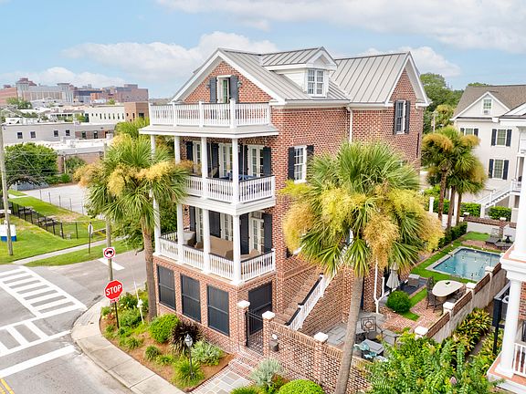 Experience the best of waterfront living at this elegant residence on prestigious Halsey Boulevard. With sweeping sunset and water views and thoughtfully curated custom details throughout, this home offers a rare blend of charm, comfort, and luxury. Step inside to find a light-filled interior featuring all new custom French doors and multiple balconies with wrought iron railings, bringing in ample natural light and framing breathtaking views. The dining room is also enhanced by the French doors, creating an inviting space for entertaining and allowing a cool breeze in. Elevator to all floors.The gourmet kitchen is equipped with high-end appliances, custom cabinetry, and Brazilian hardwoods, all flowing seamlessly into the spacious living room where a fireplace adds warmth and character.Crown moldings, custom draperies, and Roman shades elevate the refined finishes throughout. Retreat to the primary suite with a marble shower, soaking tub, walk-in closet, and private en-suite design. An additional bedroom offers en-suite accommodations, perfect for family or guests. Enjoy three levels of waterfront patios, a bluestone terrace surrounding the pool, and secure stucco and iron gates leading to the private motor court. A three-car garage plus off-street parking ensures convenience and practicality. Ample parking a feature seldom found in a downtown property. Ground floor has ample space on other side of garage for a recreation type space or storage. With timeless craftsmanship and unrivaled views, this Halsey Boulevard home is a true Low country treasure. Sold furnished with a few exceptions.