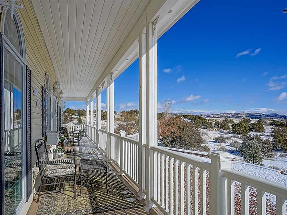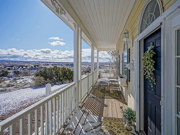 High ceilings, natural light, modern energy efficient features, and classic beauty abound in this quiet semi-secluded home on almost 3 acres in a community just 5 minutes from downtown Gallup. Enjoy breathtaking views while watching the sunrise on your wrap-around maintenance free front porch. Inside, high ceilings and large windows will bathe you in all the natural sunlight of NM. Owner designed open kitchen with high end cabinetry and ultra-performance Dekton counter tops makes cooking a breeze. The open concept in this home is complemented with radiant heated oak floors for luxury and efficiency. If coziness and comfort are your thing, you will love watching the amazing NM sunsets through bay windows in the eat-in kitchen. Your evenings can be spent soaking in the Jetted tub or hot steam shower in one of the two en suite master bedrooms. Use your imagination to decide what to do with your bonus room. Separate 30x50 wrkshp w/office. Call your realtor today to see this great property!