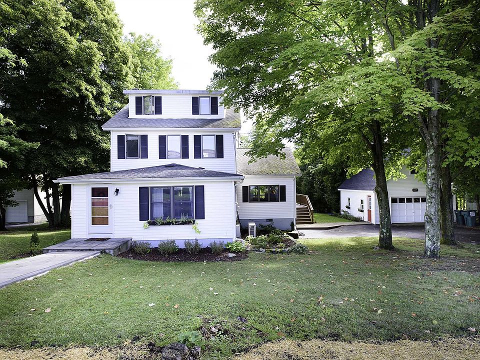 Not your average cookie cutter home. The owners have done everything here to keep the original charm of this sweet home and turn it into a modern move in ready home. Enter the first floor at the foyer which leads to the spacious living room, dining room and kitchen. There is an additional room that could be an additional bedroom, currently this is a den/office. The living room has glass sliders to the covered deck that over-looks the great backyard that is perfect for play. There is even a garden where you can grow your own veggies. The second floor is a master retreat with a huge walk in closet and bright master bath. The third floor offers the second bedroom, here the skylights create a light-filled space that would be a perfect office studio. Storage is no problem here. Check out the storage space over the garage. This the perfect home for those that are looking for a unique home on in a beautiful setting