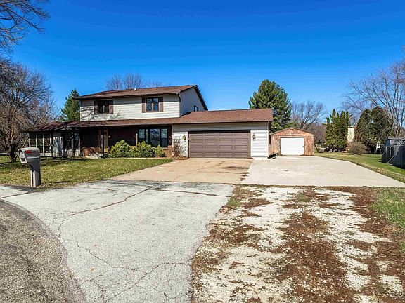 Beautiful 2 story sits on 1.19 acres. 4 bedrooms, 3 baths including primary bath. Roof was taken down to the sheeting and only has 1 layer. Wood stove in family room wasn't used. There is a shed 16x20 which doubles as a 3rd car garage. There is a new driveway poured which is extra strong and can hold an RV or semi. Deep freeze stays. Older refrigerator stays in the basement. Gorgeous patio area is newer. Leaf filter gutter guards.