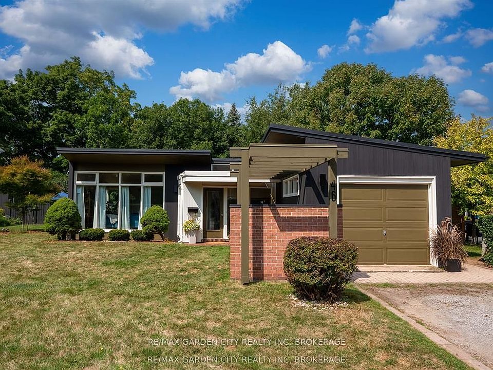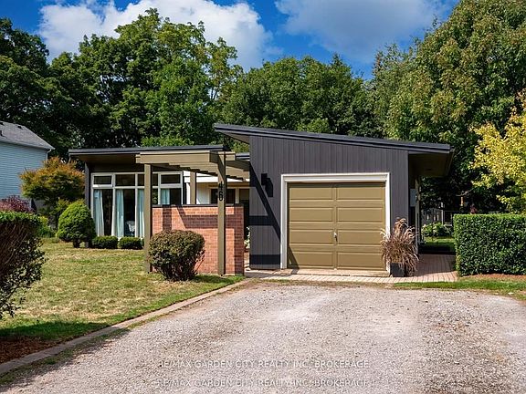 Oversized Lot on Martindale Pond Preserved Mid-Century Modern Retreat / Potential Development Opportunity. (LOT SIZE 90 x 164.90) Step into timeless style with this unique mid-century modern residence that blends retro charm with todays lifestyle. Situated on an oversized double lot, it offers both convenience and serenity minutes from the city and highways, yet tucked away in a private, tree-lined setting. Inside, authentic mid-century features shine: brick and wood accent walls, built-in cabinetry and bookshelves, floor-to-ceiling and picture windows, sloped ceilings and rooflines, Red Cedar siding, and original hardwood floors. The Frank Lloyd Wright inspired design emphasizes clean lines, natural light, and flowing spaces ideal for entertaining or relaxing at home. Outdoors, enjoy a sparkling pool, perennial gardens, and Martindale Pond just steps away. The neighbourhood also offers community access to the pond with kayaks, canoes, a deck, and sitting area for all to enjoy. This rare property provides the best of both worlds-easy city access with the feel of a private retreat. Recent upgrades include: bathroom renovation (2025), new air-conditioning with warranty (2025), full exterior paint (2023), entire pool decking lifted/reset (2019), pool concrete resurfaced and repainted (2021), and new 15-amp panel in pool shed (2025).