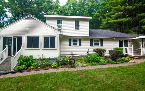 Come for a personal tour! Your own private paradise! At the end of a dead end road and up a private driveway you will find a beautiful and spacious 3 bedroom home. Enjoy the beautifully landscaped yard in front and spa-like patio with koi pond in the rear; perfect for relaxing quietly or entertaining a crowd. Inside, wooden floors shine throughout. You'll find stainless steel appliances and a center island in the kitchen, and a pellet stove & cathedral ceiling in the family room. From the office, go up the spiral staircase to the master bedroom, which has its own private balcony with a view of the patio. Wooden deck along the back of the house leads down to the back where you can disappear into your own "secret garden." Close to major routes and yet away from it all.