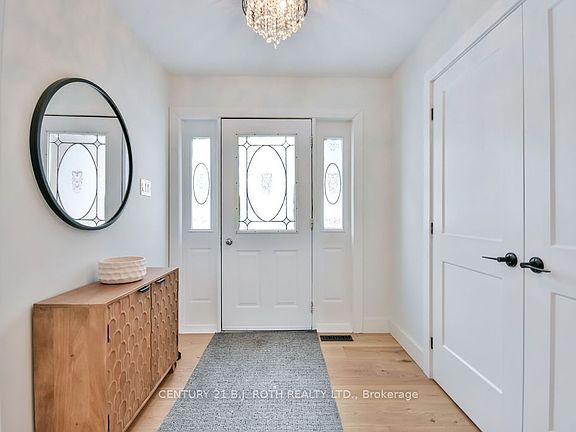 Welcome to 46 Holloway Lane in the prestigious sought-after Midhurst Community. This fully renovated home offers modern elegance and an open concept main floor. The home features three spacious bedrooms with a large and functional walk-in closet and two full bathrooms upstairs with tons of natural light. The new custom kitchen is perfect for cooking and entertaining, with the large island, exquisite quartz countertops, under mount lighting, under mount sink, pot filler & SS appliances. The large dining room with sliding doors allows you to access the newly built and over-sized rear wood deck. A perfect deck to entertain or sip on your coffee in the morning. The family room offers a stunning floor to ceiling shiplap, custom built-ins, and a sleek linear electric fireplace. This stunning turn-key home has been; freshly painted throughout, updated light fixtures, pot lights, engineered hardwood floors on main, all new bathrooms with new vanity, tub/showers, toilets, fans, porcelain tile, and granite tile. All new interior doors, trim, casing & hardware. New Railing, spindles and carpet on stairs. Updated laundry room with garage access to the oversized 3 car garage. In-law suite Basement features large living & Rec room with a cozy gas fireplace. Two large bedrooms, new modern 4-piece bathroom, freshly painted throughout, new vinyl floors, pot lights, doors and trim. Wet Bar, full kitchen, rough in plug for a stove and laundry in lower level as well. Furnace, Air conditioner, blown in attic insulation & Central Vac in 2024. 3 Car garage with gas heater rough-in and 6 plus car parking, exterior soffit pot-lighting. The charming lot is tastefully landscaped with mature trees, hedges, garden shed, and large poured concrete front porch. This stunning home is a short drive to; parks, schools, trails, and much more.