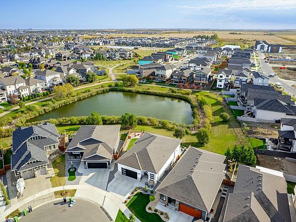 THIS HOME IS A WORK OF ART. Hillside bungalow featuring walkout basement - situated on a HUGE PIE LOT backing onto lake. Overloaded with convenience, this 3 BED + 3 BATH home is immaculate, just like new, providing incredible value in both location & design. With over 2,800 SqFt of living space, this house is perfect for the new or growing family- or retirees alike. Walk through the front door to towering ceilings, a beautiful expansive living & dining room + a dream chef's kitchen w/ quartz countertops & ample cabinetry. Luxury finishes throughout. Primary suite is a quiet oasis with 5 pc ensuite & walk-in closet. A walkout deck overlooks the beautiful lake. Downstairs features a HUGE rec room + 2 more large beds + full bath. INCREDIBLE backyard is fully fenced & landscaped with the perfect patio for R&R. Double oversized garage with extra tandem stall is heated/insulated + new epoxy floor. Central A/C. A perfectly situated home close to all amenities - experience Fort Saskatchewan living at its finest.