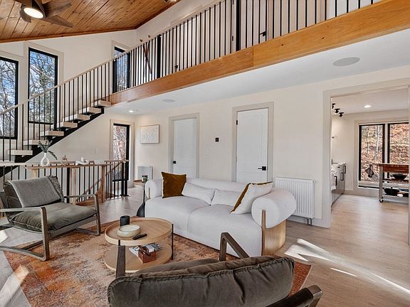 Located in the sought-after Edelweiss Association, this beautifully renovated 3-bedroom, 2.5-bath home offers a seamless blend of modern comfort and Scandinavian-inspired design. Previously featured in The New York Times Real Estate section, it presents a turnkey opportunity for full-time living, seasonal enjoyment, or investment. Set on over an acre of wooded land, the property offers privacy and a peaceful connection to nature. Inside, the open-concept layout is filled with natural light from expansive windows, highlighting premium finishes throughout. The living area features a cozy gas fireplace and energy-efficient mini-split systems for year-round comfort. The sleek kitchen is outfitted with Bosch appliances and contemporary cabinetry, ideal for cooking and entertaining. Step outside to a spacious deck with filtered mountain views and a hot tub—perfect for relaxing after a day of outdoor adventure. The finished lower level includes a stylish bar with beverage fridge and a half bath, offering flexible space for gatherings. Residents enjoy access to three Pea Porridge Ponds and five private beaches, ideal for swimming, paddling, or simply unwinding by the water. Just minutes from North Conway’s vibrant shops, dining, and ski resorts, this home offers the perfect balance of recreation, nature, and convenience. Come see this exquisite home at the open house on November 29th, from 12 noon to 3pm.