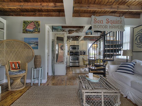 Beach house in fantastic location! Year round and totally rehabbed in 2002. Three bedrooms and spacious bath. Master has slider to private balcony. Beachy-style custom cabinetry in kitchen with stainless appliances. Gas fireplace in living room with original pine flooring. All new electrical, heating and plumbing in 2002. 4 skylights. Screened porch in front. Deck in back off kitchen. Two driveways for convenient parking. Fenced in yard with shed. Easy in and out of beach area. Don't wait! Start the new year out right!